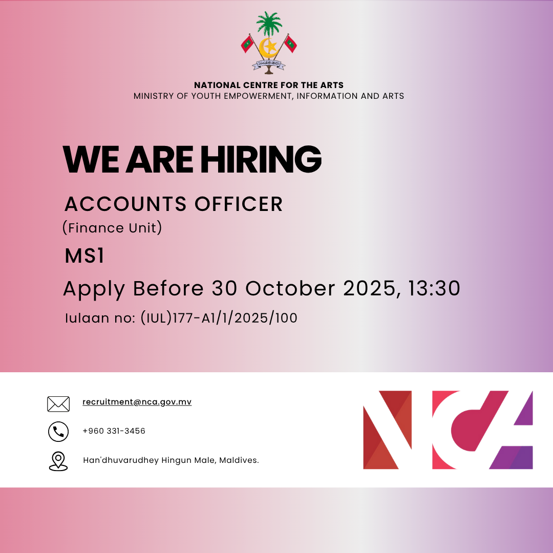 އެކައުންޓްސް އޮފިސަރ - ވަޒީފާގެ ފުރުޞަތު