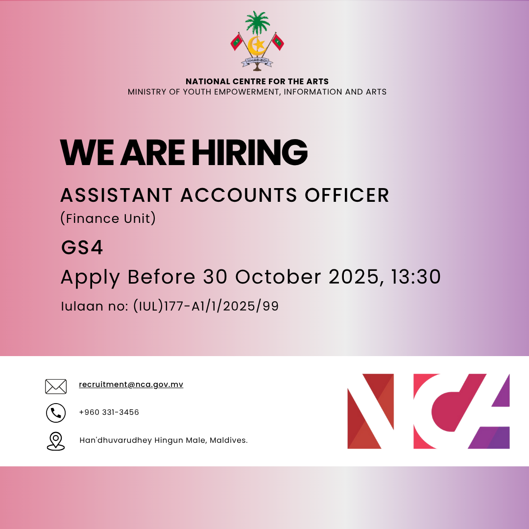 އެސިސްޓެންޓް އެކައުންޓްސް އޮފިސަރ - ވަޒީފާގެ ފުރުޞަތު
